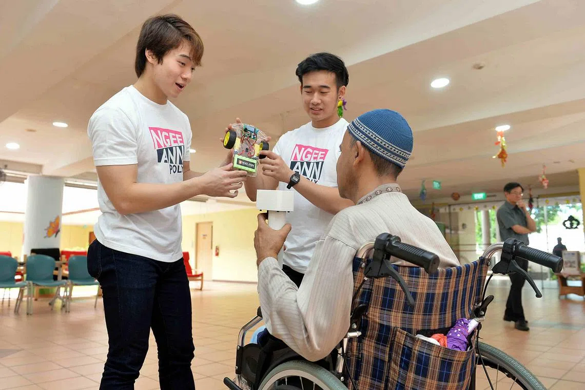 SAMBIL memegang alat kawalan jauh menggunakan tangan kiri, pesakit angin ahmar, Encik Abdul Rahim Abdullah, 59 tahun, mampu menggerakkan kereta mainan dengan teknologi Bluetooth.