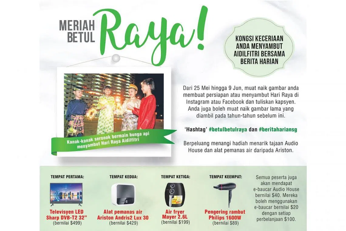 PEMBACA akhbar ini dan pengikutnya di media sosial boleh menyertai kempen media sosial Berita Harian menjelang Hari Raya Aidilfitri yang akan berlangsung sehingga 9 Jun.