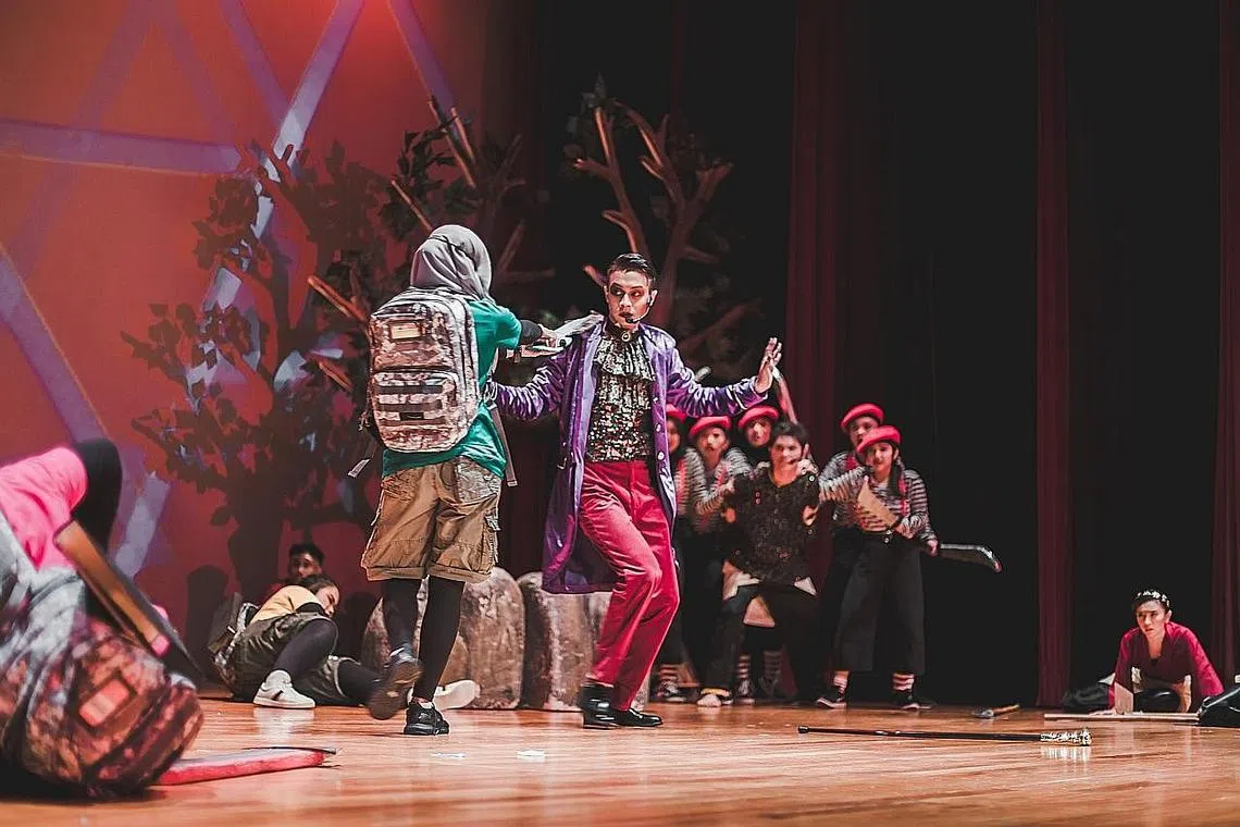 PEMENTASAN MUZIKAL: Persembahan teater 'Kota Kalis Peluru', hasil karya Farhanah Diyanah dan dipersembahkan di Music Box, Politeknik Ngee Ann baru-baru ini, mengisahkan tentang lima belia Persatuan Belia Masa Depan (PBMD) yang sedang meraikan hari lahir seorang teman apabila satu kebakaran besar berlaku di sebuah pulau berdekatan. - Foto NOR RIZAL EBRAHIM -