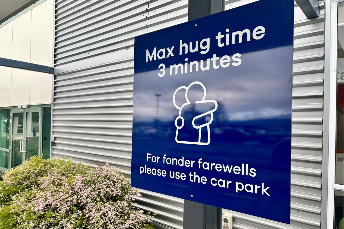 “Untuk memastikan urusan berjalan lancar, kami telah memasang papan tanda baru, termasuk tanda ‘Waktu memeluk maksimum tiga minit’,” kata ketua eksekutif lapangan terbang, Encik Daniel De Bono.