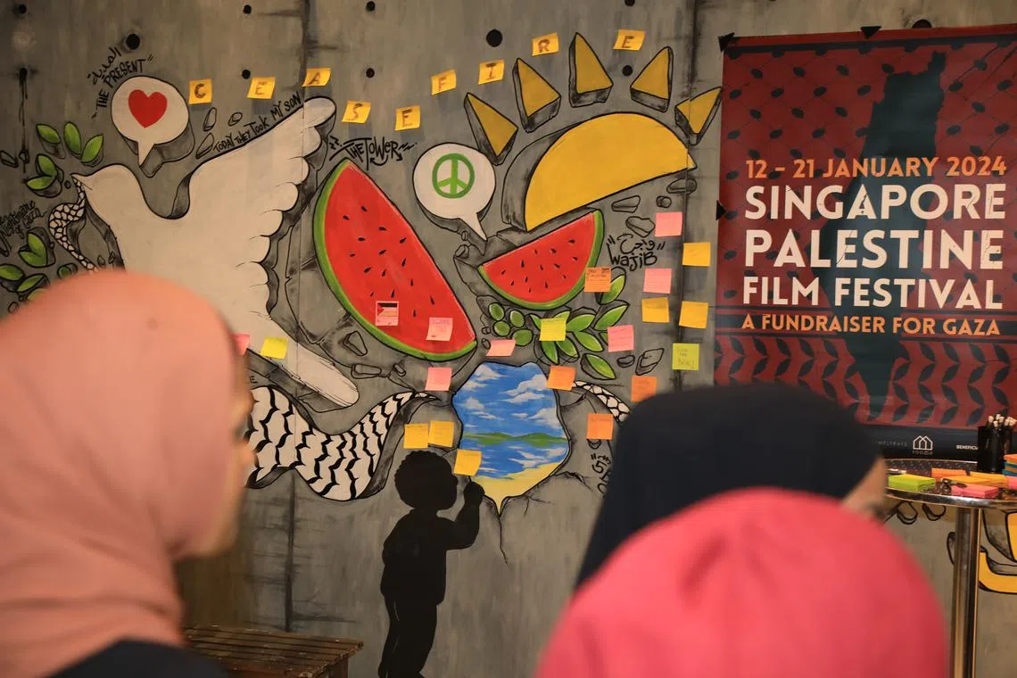 Sekitar 340 pengunjung telah menghadiri hari pertama pelancaran Festival Filem Palestin Singapura pada 12 Januari.