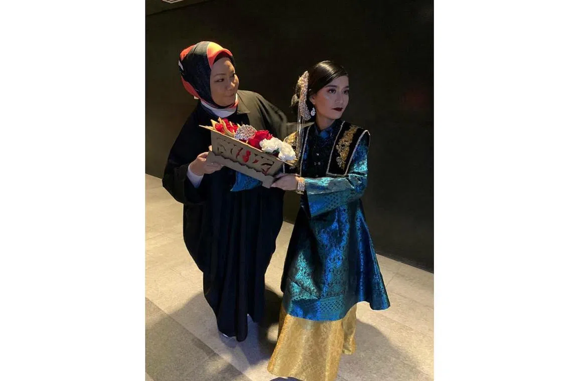 TERUSKAN TRADISI: Cik Elina (kanan) berasa bertanggungjawab untuk mengekalkan budaya Melayu melalui tarian. Bersama Presiden Sriwana Cik Fauziah Hanom Yusoff (kiri), Cik Elina berharap dapat menyumbang kepada generasi yang akan datang. - Foto ihsan NUR ELINA ABDUL -