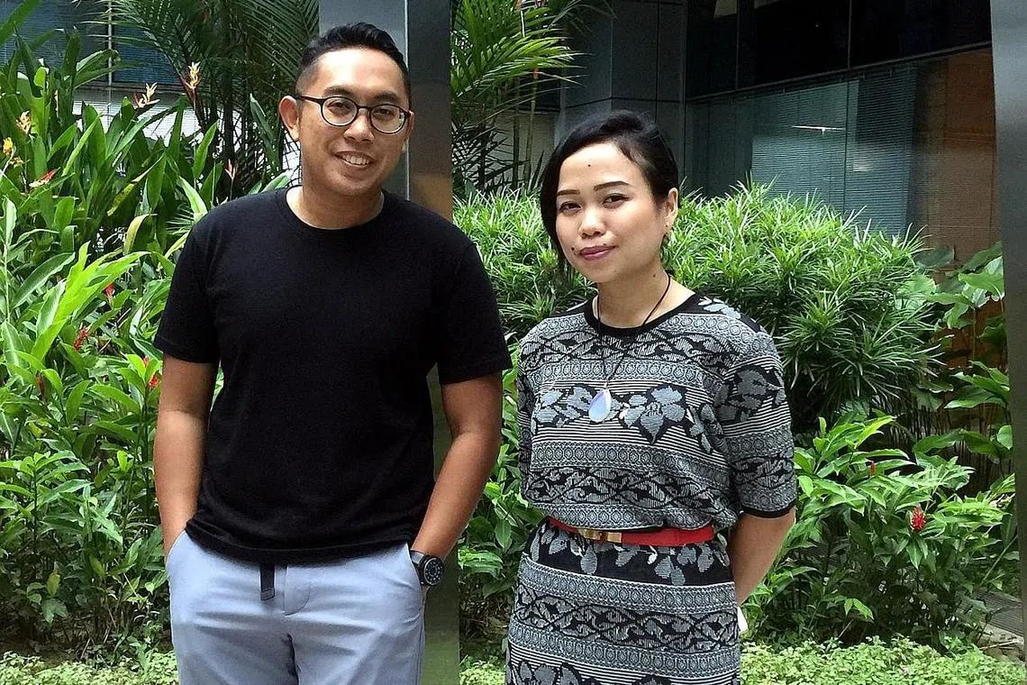 KENALKAN KEUNIKAN JAZ: Penyanyi Rudy Djoharnaen dan penganjur acara We Love Jazz Party 2017, Cik Namie Rasman, ingin perbetulkan salah tanggapan ramai tentang irama jaz yang disangka hanya buat golongan elit. Pemain dram, Encik Mohamad Rafaee Mahmood, pula melihat perkembangan positif dunia jaz di Singapura. - Foto-foto HARYANI ISMAIL/SHAHRIYA YAHAYA -