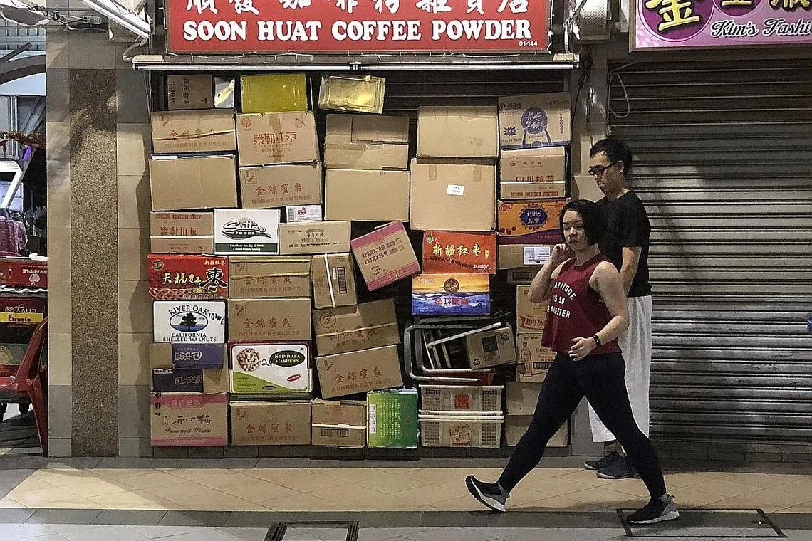 APABILA orang ramai pada waktu makan tengah hari menjamu selera di Pusat Makanan dan Pasar Bulat Tampines pada tengah hari pada 16 dan 17 Mac, akan ada sembilan individu berjalan di kawasan kosong di tengah pasar itu dalam satu barisan, menolak troli membeli-belah yang dihiasi lampu lap-lip.