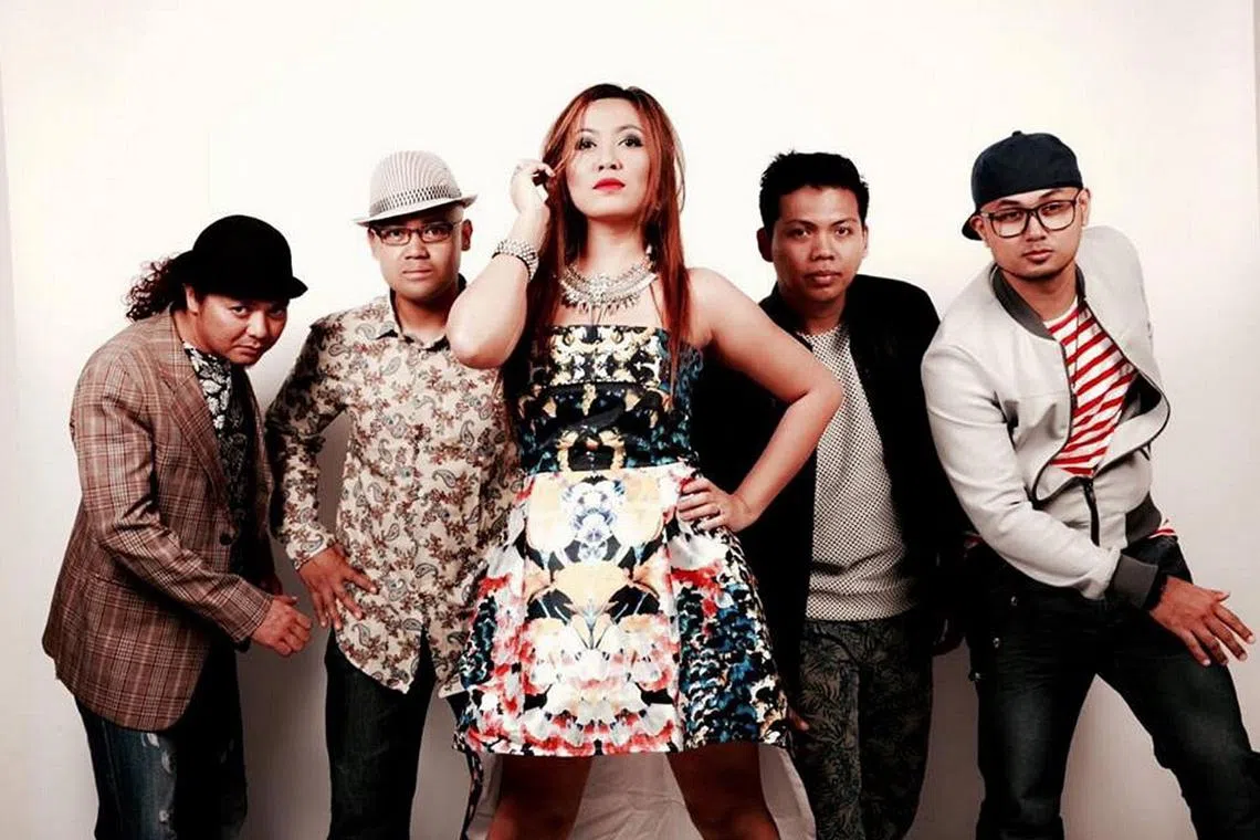 HADAPI PERSAINGAN DI BERLIN: Selepas ditabal juara dalam pertandingan Global Battle of the Bands (Singapura) yang diadakan buat julung-julung kalinya di Singapura, kumpulan The Marisol bakal menghadapi saingan sengit di pentas persaingan peringkat dunia di Berlin pada 26 Mei. Foto menunjukkan anggota band itu (dari kiri), Mohammad Hassan Mohammad, Raziz Rashid, Zulyana Aziz, Mas Iskandarshah Masrun dan Adli Samad. - Foto THE MARISOL -