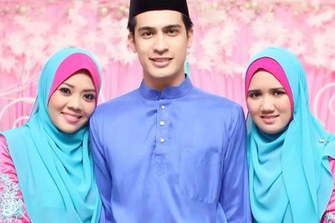 RUMAH TANGGA BAHAGIA: Pelakon Ashraf Muslim bersama dua isterinya, Wan Sakinah Ahmad Saburi (kiri) dan Noor Dayana Lokman (kanan). - Foto MSTAR ONLINE -