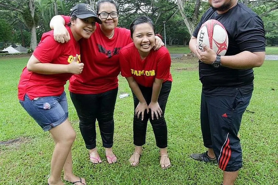 BERI MOTIVASI: Encik Muhammad Firdaus (kanan), antara relawan yang menganjurkan program ALCymPics di Taman Pasir Ris, yang bertujuan merangsang pembangunan menyeluruh belia. - Foto ihsan MUHAMMAD FIRDAUS KAMALUDIN JAMAL -