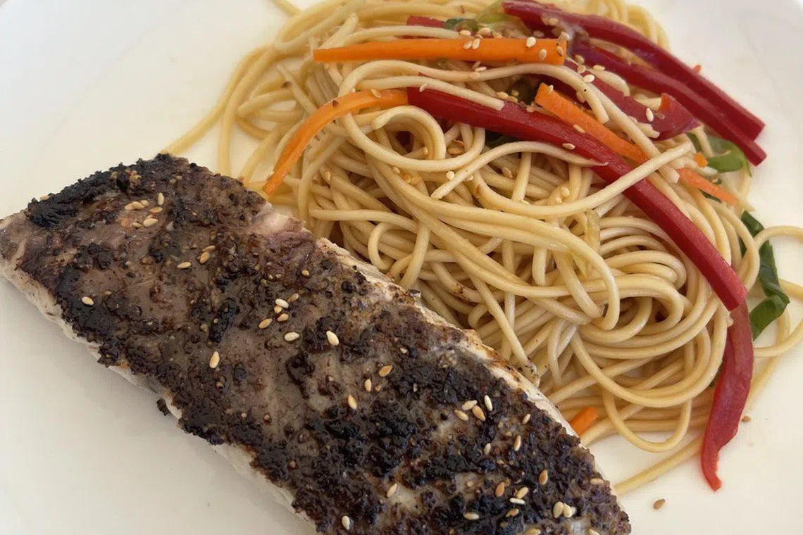 SEGAR: Makanan laut yang ditangkap di perairan luas di Mandurah menampilkan hidangan, ‘Pepper Crusted Sea Bass and Cold Pasta’. - Foto BM oleh DAHLIA ZULKIFLI