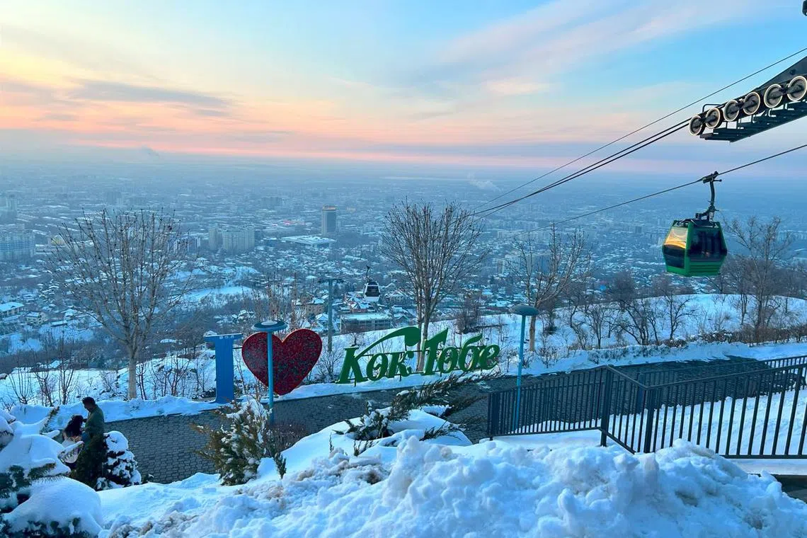 Panorama bandar Almaty sambil melihat matahari terbenam dari Kok Tobe. Kok Tobe adalah tempat tertinggi di Almaty, dengan ketinggian 1,100 meter. - Foto BM oleh NURAISHAH ABDUL RAHMAN