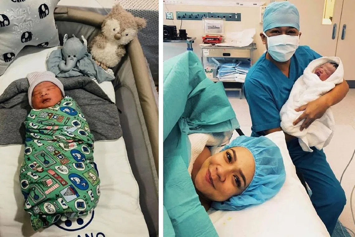PASANGAN BAHAGIA: Nedim dan Nora menyambut kelahiran anak lelaki, Mohd Neqayl, seberat tiga kilogram semalam. - Foto INSTAGRAM NEDIM NAZRI -