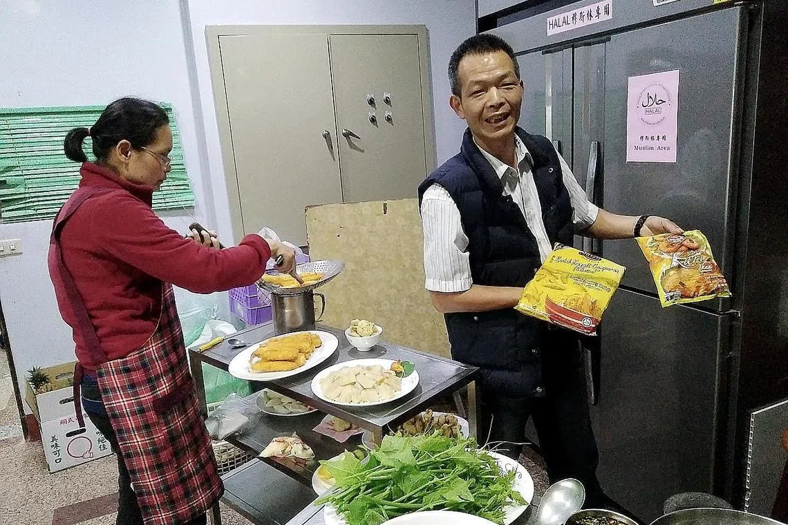 PATUH PERATURAN: Encik Jaden, pemilik Lung Yung Leisure Farm dekat Alisan, menunjukkan bahan-bahan masakan halal di dapur Muslimnya. - Foto SAINI SALLEH -
