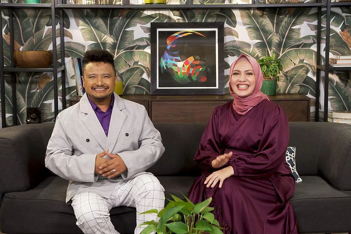 KONGSI INSPIRASI: AB Shaik (kiri) dan Ainon Talib dapat merasakan semarak motivasi Ramadan yang berbeza melalui perkongsian tamu 'Warna Ramadan'. - Foto MEDIACORP SURIA -