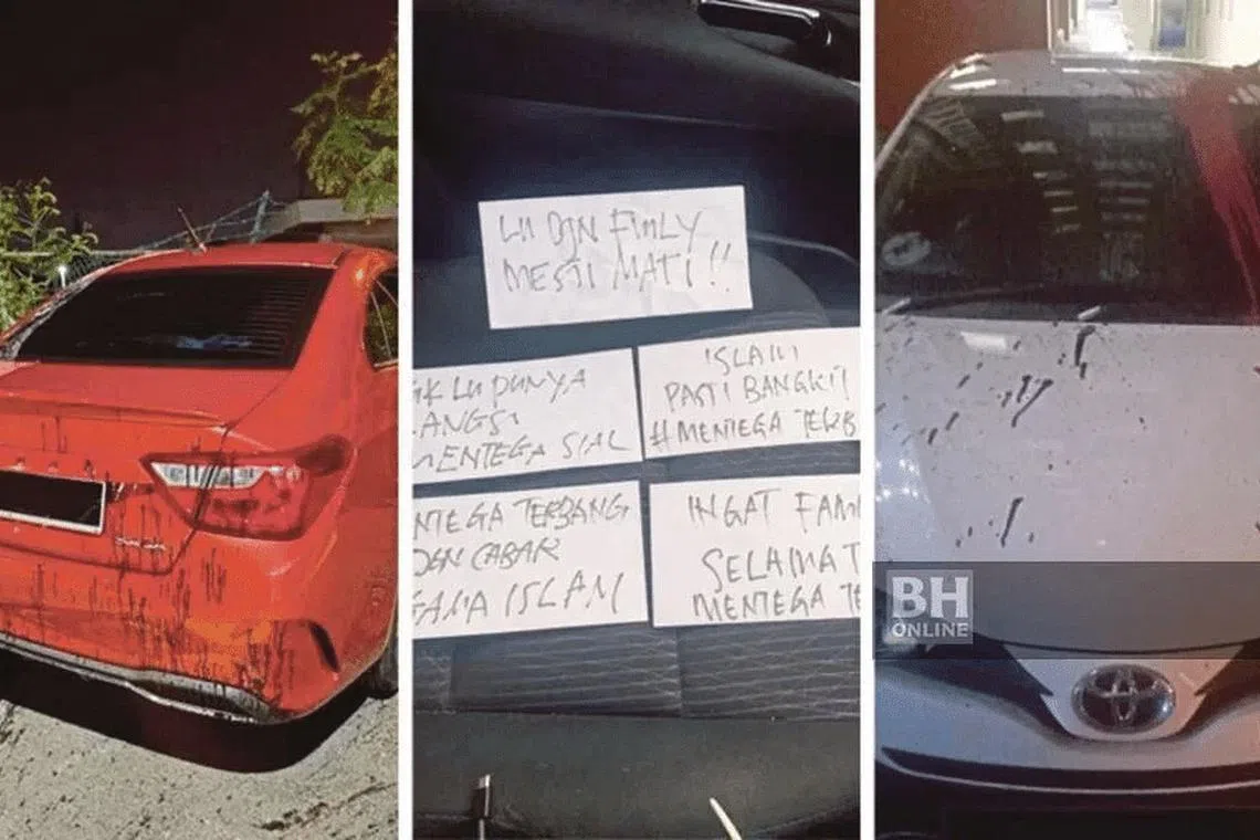 "Kenderaan milik kedua-dua mangsa dilaporkan disimbah cat dan mereka turut menerima beberapa nota berbaur ugutan.