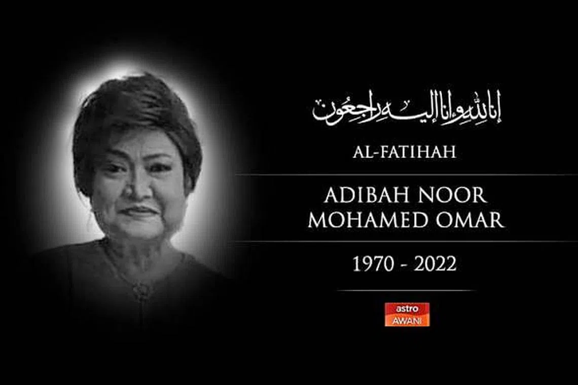 KUALA LUMPUR : Penyanyi dan pelakon serba boleh, Adibah Noor, meninggal dunia pada 7.45 malam Sabtu (18 Jun) di sebuah hospital swasta di ibu negara, setelah mengalami sesak nafas.