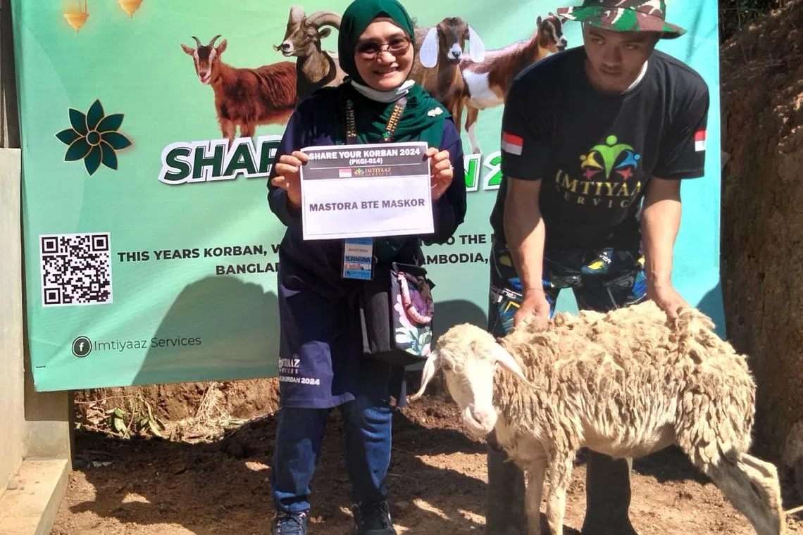 Dengan pengalamannya membantu pelaksanaan ibadah korban di masjid Singapura 10 tahun lalu sebagai relawan, Cik Mastora berkata beliau tertarik dengan keadaan yang dilihatnya di luar negara.