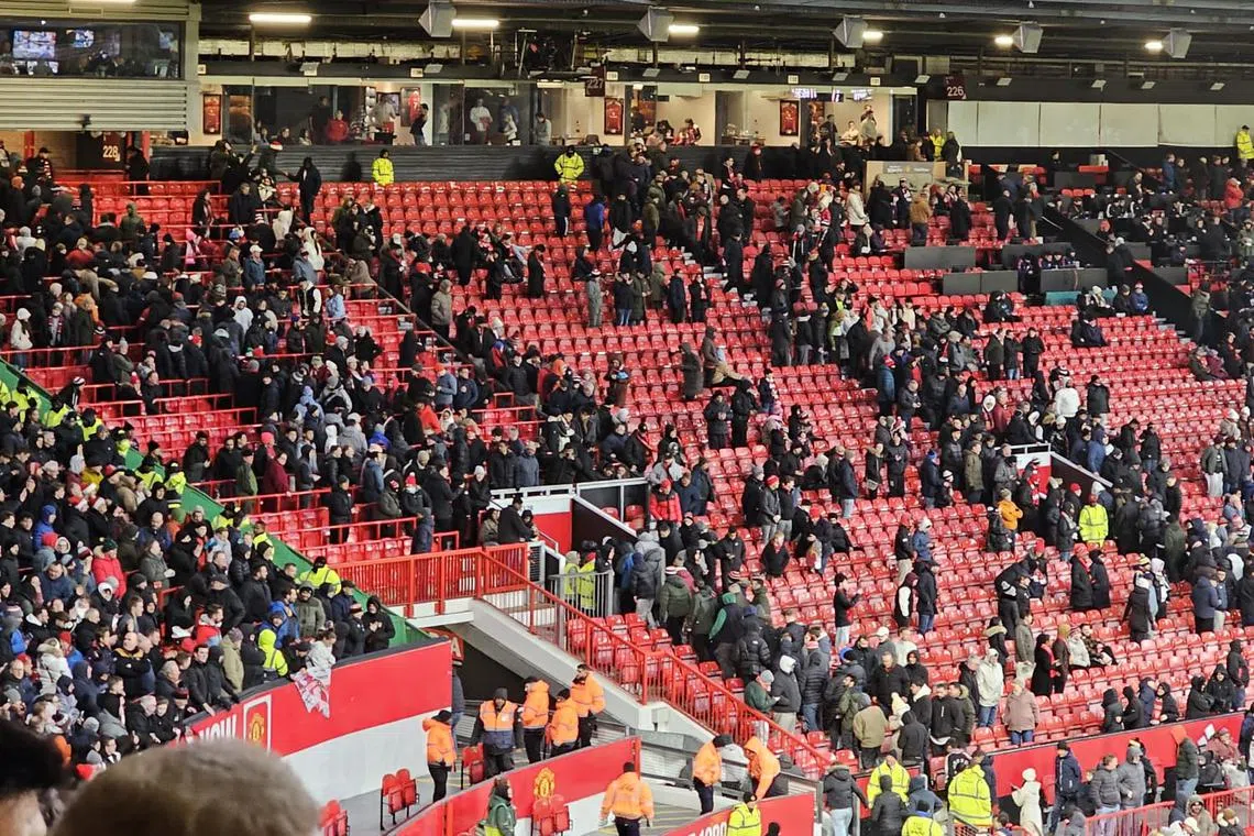 Ramai penyokong Manchester United meninggalkan stadium selepas pasukan Bournemouth menjaringkan gol ketiga dalam perlawanan di Stadium Old Trafford pada 22 Disember lalu. - Foto BM oleh NAZRY MOKHTAR