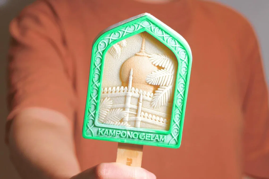 Popsicle SingaPop Kampong Gelam pula menawarkan perisa Gula Melaka Garam Laut (pilihan warna bingkai hijau), strawberi Korea (bingkai ungu) dan Coklat ‘Nama’.