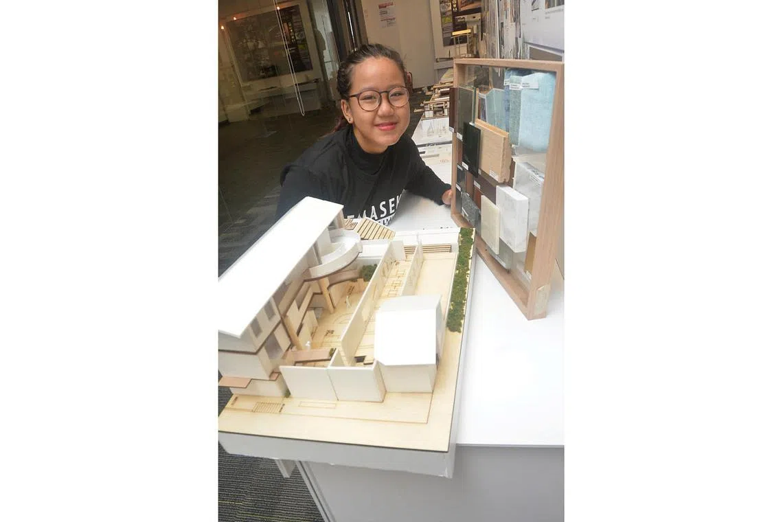TEKANKAN KEHARMONIAN AGAMA: Sebagai remaja yang gemar menjelajah negara Barat, Cik Nursafura Mohamed Ali menghasilkan model Pusat Pendidikan Islam di Dempsey Hill bagi tujuan mengetengahkan kesenian Islam dan ruang perkongsian ilmu antara masyarakat Islam dengan bukan Islam. - Foto KHALID BABA -