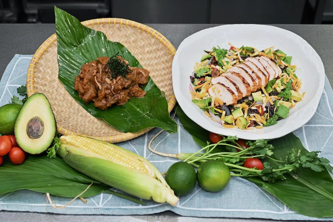 1. Dada ayam digaul dengan bawang putih cencang, rempah cajun, garam rendah natrium, minyak zaitun dan jus limau nipis.