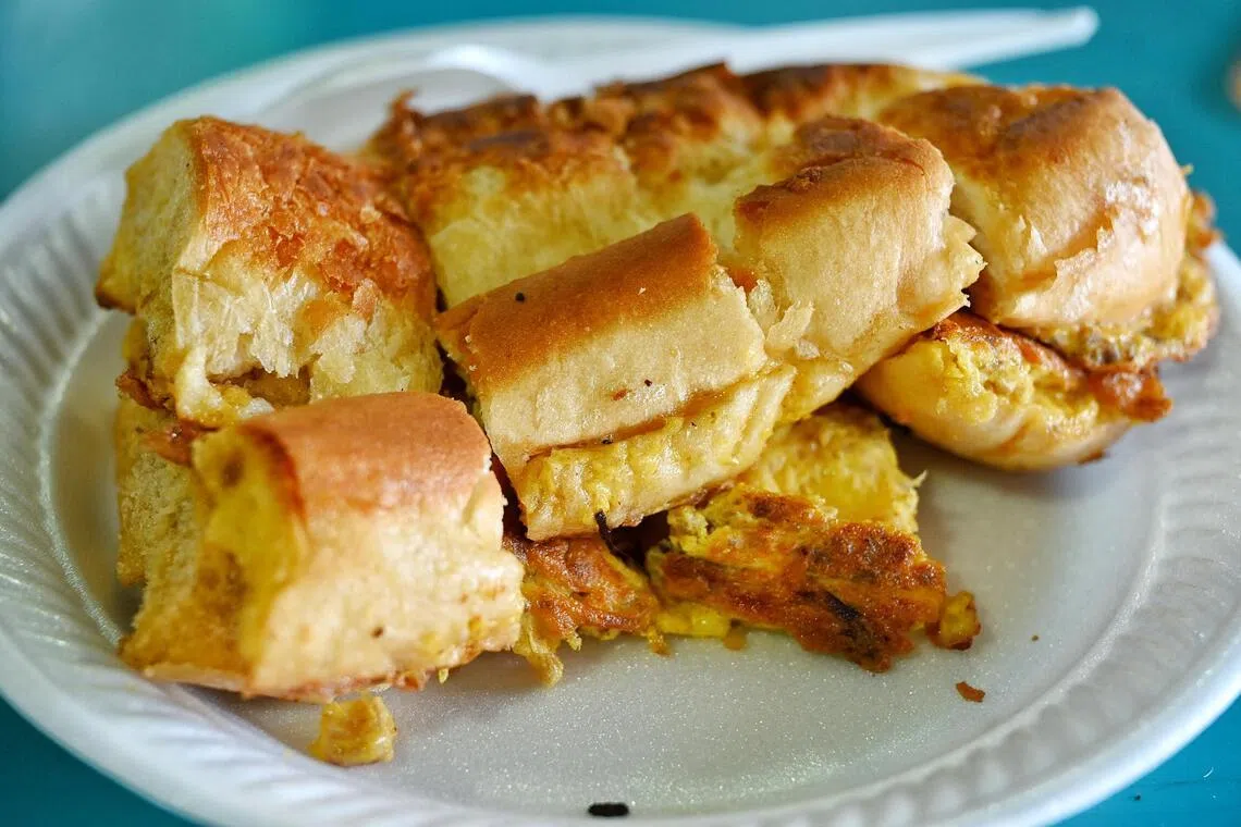 Ia dibuat menggunakan roti Perancis, roti panjang seperti baguette yang lebih lembut dan padat, dibelah dua, kemudian disapu dengan campuran telur, daging cincang dan bawang sebelum digoreng di atas kuali panas.