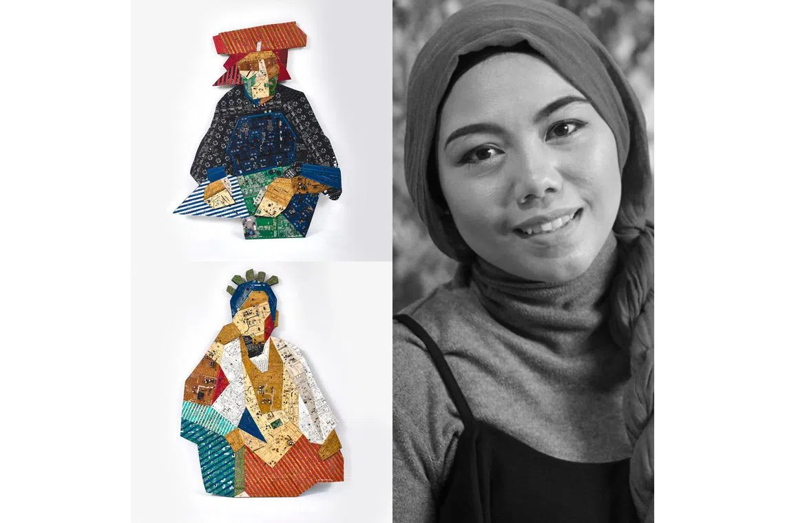 KARYA UNIK MESRA ALAM: Nor Tijan Firdaus menghasilkan kerja seni yang menggunakan sisa elektronik tentang gadis Melayu dan wanita Samsui berdasarkan lukisan awal pelukis perintis Malaysia, Redza Piyadasa, dan pelukis Singapura, Lai Foong Moi. - Foto CORE DESIGN GALLERY -
