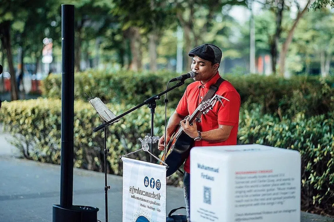 Kehidupan sebagai seniman jalanan sering disalah anggap sebagai pengemis yang menagih simpati dan ihsan di jalanan. Namun, dua anak Melayu - seorang pemilik ijazah kejuruteraan dan seorang lagi guru Sastera Inggeris - membuktikan mereka mampu menjadi penyejuk hati orang awam ketika berhibur di tempat awam. Mereka adalah antara pemuzik tempatan yang tampil di acara Busking By The Bay sempena pesta gaya hidup DBS Marina Regatta, antara Jumaat dengan Ahad ini. Wartawan HARYANI ISMAIL (haryani@sph.com.sg) melaporkan. Ingin tepis tanggapan negatif umum mengenai seniman jalanan sebagai peminta sedekah