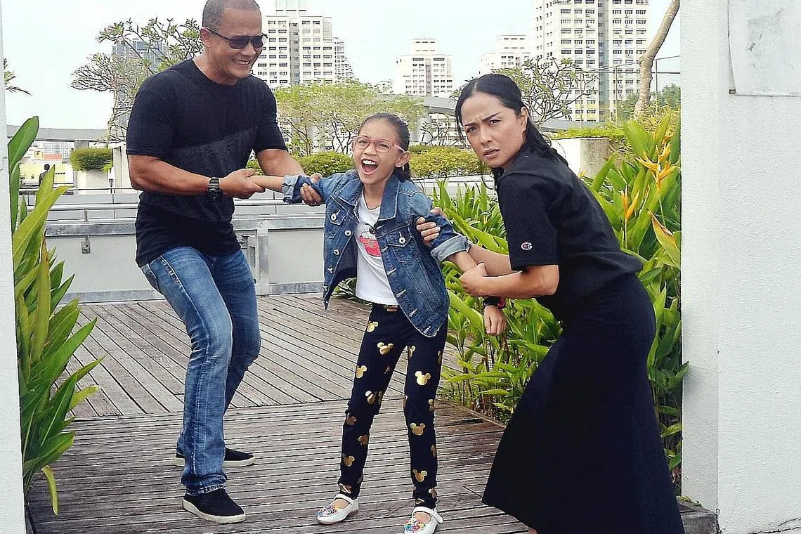 TERSENTUH NALURI KEIBUAN: Suhaillah Salam lebih terkesan dengan amanahnya sebagai ibu apabila membawakan watak ibu autistik, Eja yang menangani sendiri anaknya, Syakilla (lakonan Alfreda Qistina Puteri Haikel) selepas ditinggalkan suaminya, Sulaiman (Jeff Catz). - Foto KHALID BABA -