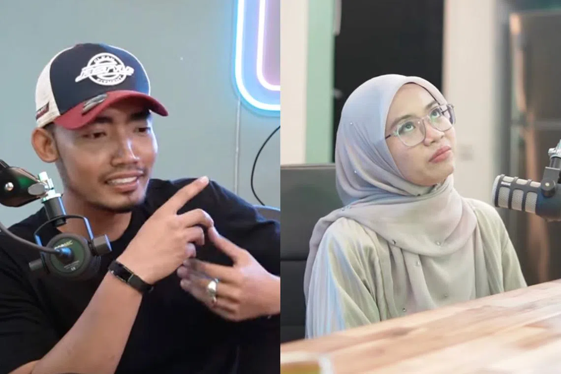 BIKIN RAMAI MARAH: Nama pempengaruh TikTok, Abang Tesla (kiri) menjadi tular sejak beberapa minggu lalu apabila beliau memuatnaikkan video dirinya memujuk isterinya, Nurmajdina Jamari (kanan), yang sebak mendapat tahu berita beliau bakal bernikah lagi. - Foto OH BULAN!