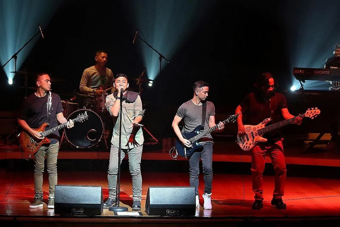 PERSEMBAHAN LUAR BIASA: Pasha dan anggota Ungu lain seakan melepaskan kerinduan yang besar terhadap dunia muzik menerusi konsert ulang tahun ke-20 band di Esplanade Sabtu lalu, dengan sajian muzik dan penjiwaan padu. - Foto DAVID WIRAWAN, ESPLANADE -