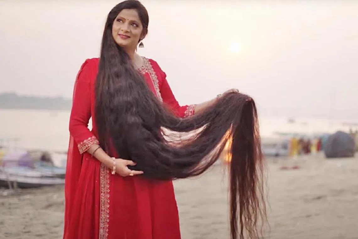 Seorang wanita berusia 46 tahun dari Uttar Pradesh, India, yang telah menyimpan rambutnya sejak berusia 14 tahun, telah menerima Rekod Dunia Guinness untuk rambut terpanjang di dunia bagi orang yang masih hidup.