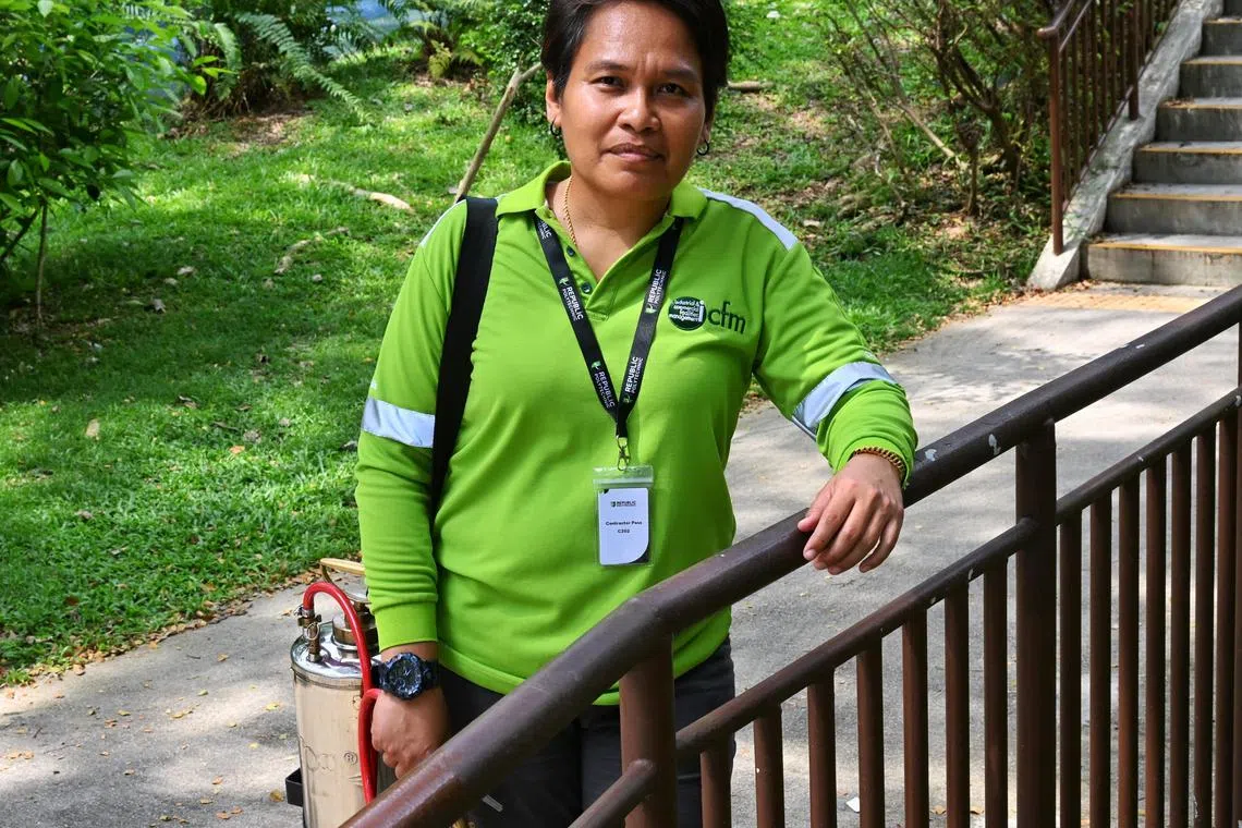 Dalam dunia kawalan serangga dan haiwan perosak yang didominasi kaum lelaki, beliau berdiri megah sebagai satu-satunya wanita dalam pasukan kawalan perosak di syarikat Industrial & Commercial Facilities Management Pte Ltd (ICFM).