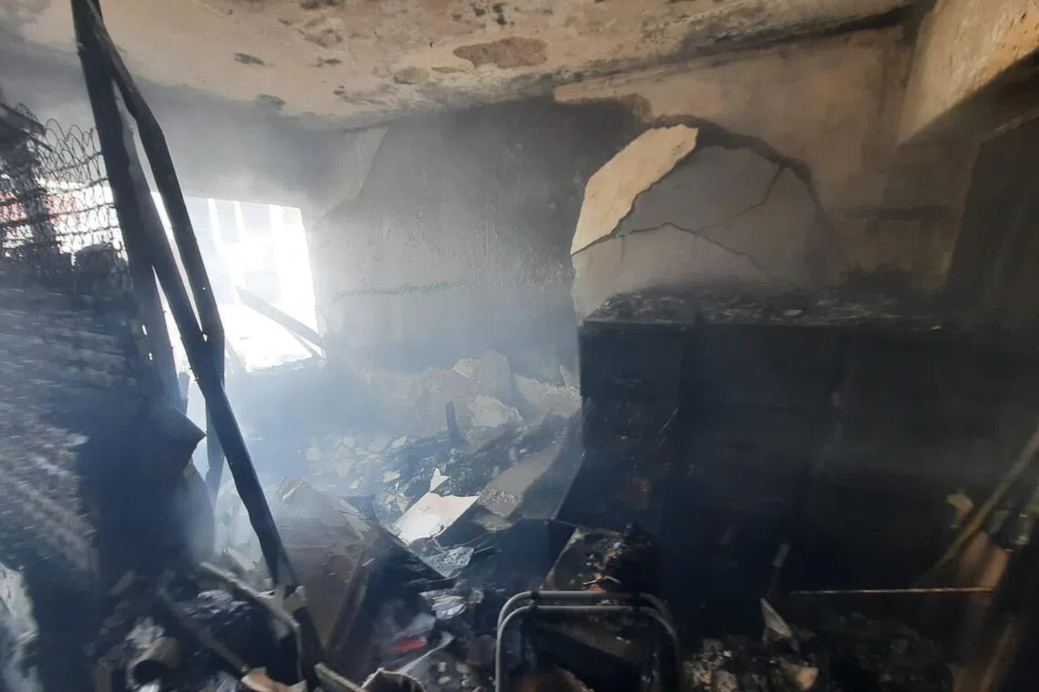 DIJILAT API: Anggota bomba memasuki unit kediaman di tingkat 21 di People’s Park Complex dan memadamkan kebakaran menggunakan dua pancutan air pada 4 Januari. - Foto FACEBOOK SCDF