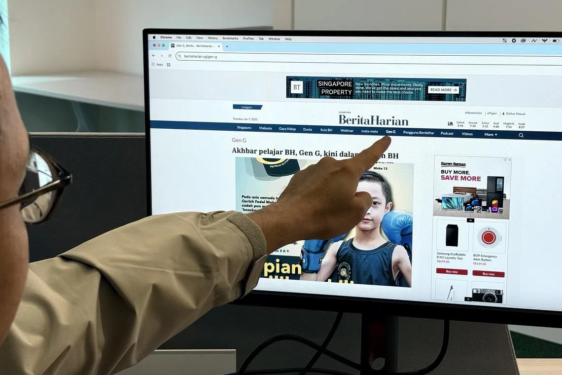BACA DALAM TALIAN: Para pelajar kini boleh membaca akhbar Gen G melalui laman web beritaharian.sg. - Foto FIRDAUS MAHADI