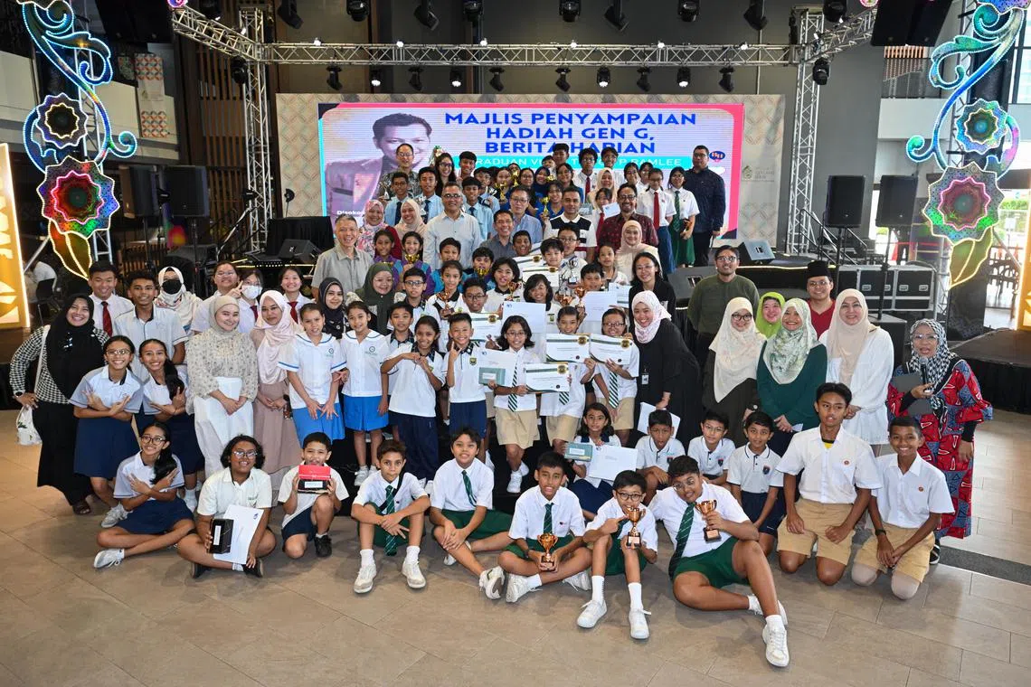 Menteri di Pejabat Perdana Menteri dan Menteri Kedua (Pendidikan dan Ehwal Luar), Dr Mohamad Maliki Osman, bergambar bersama peserta pelajar di majlis penyampaian hadiah Peraduan TikTok dan Video yang dianjurkan oleh akhbar pelajar Berita Harian (BH), Gen G di Wisma Geylang Serai (WGS) pada 27 Mac. - Foto BH oleh SHAFIQ APANDI