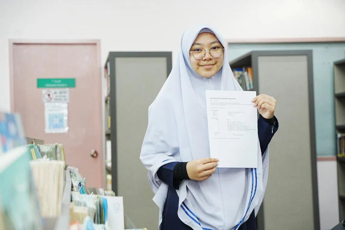 KEPUTUSAN CEMERLANG: Hannah Yusra Rashid antara pelajar Madrasah Aljunied Al-Islamiah yang meraih keputusan cemerlang. - Foto NUR DIYANA TAHA