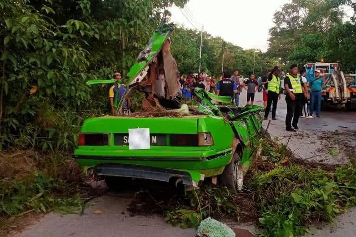 SIPITANG (Sabah): Dua maut manakala tiga lagi cedera dalam nahas sebuah kereta yang melanggar pokok tumbang di Jalan Jeti SFI, Sipitang, Sabah.
