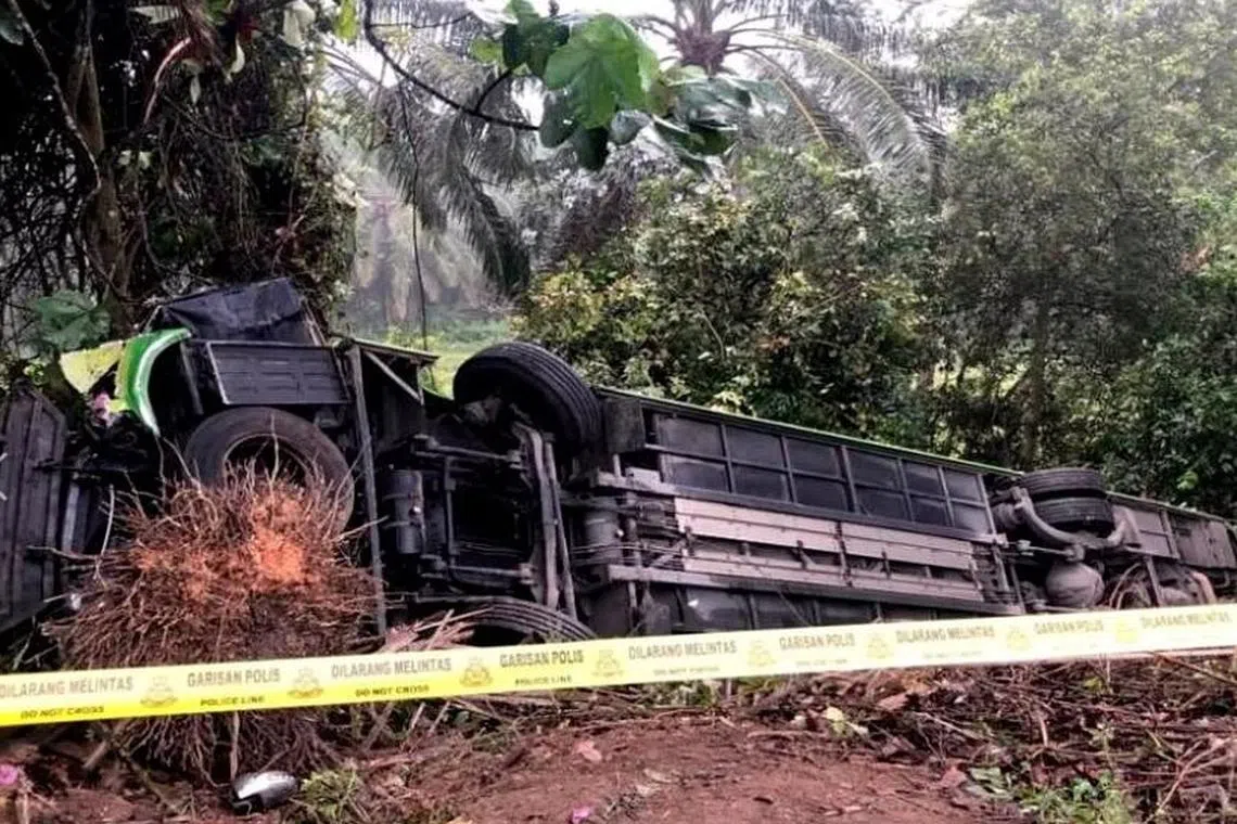 “Siasatan awal mendapati kemalangan berlaku apabila pemandu bas hilang kawalan lalu bertembung dengan lori treler sebelum terbalik di cerun tepi jalan,” kata ketua polis itu kepada wartawan di tempat kejadian.