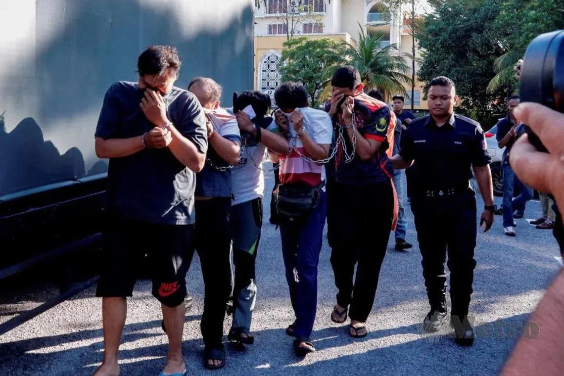 Tertuduh, Mohd Yuree Ranoff Mohd Bachuri, 41 tahun; Azharul Azuan Mohd Azan, 34 tahun; Tengku Izham Tengku Hamid, 22 tahun; Mahazir Nordin, 43 tahun; dan Syamsul Qamar Ayob, 40 tahun, hanya mengangguk faham sejurus tuduhan terhadap mereka dibacakan di hadapan Majistret, Cik Nurdiyanah Mohd Nawawi.