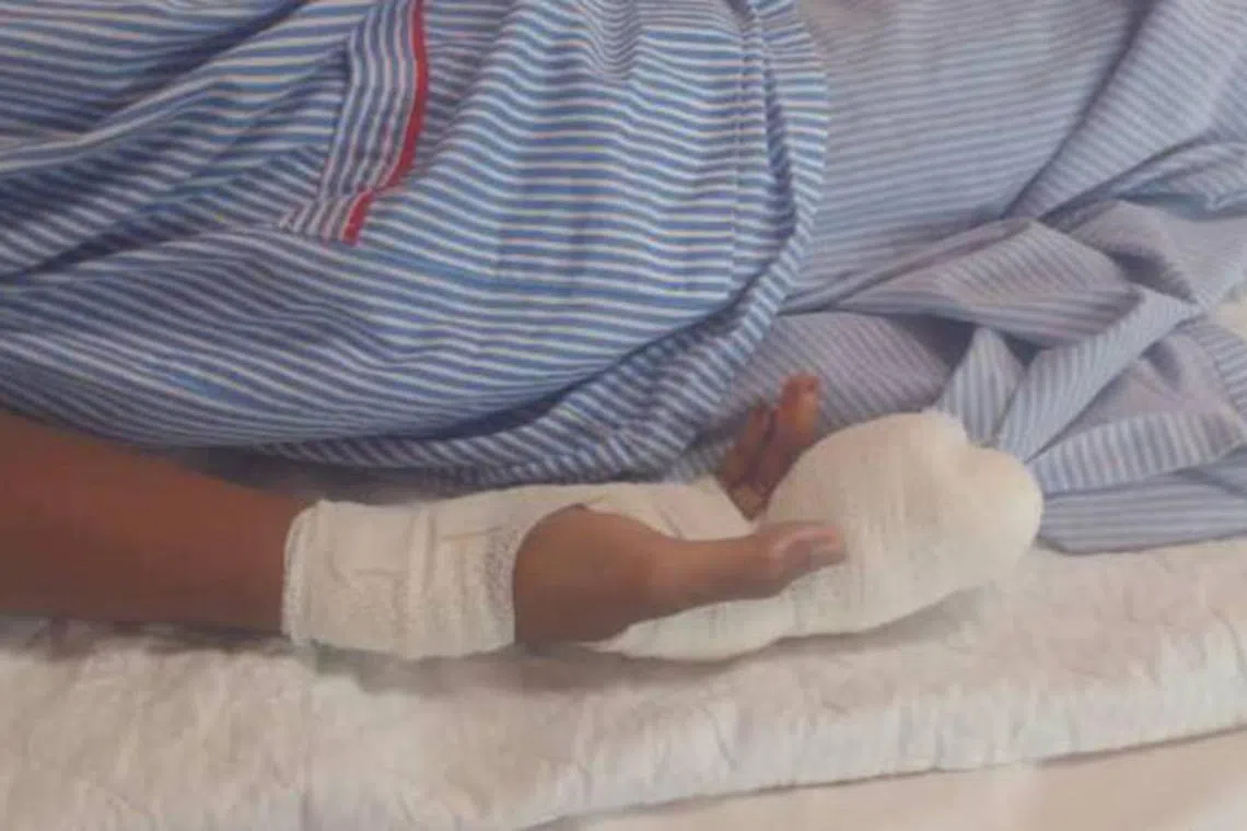 Kanak-kanak itu sudah menjalani dua pembedahan selepas semua jarinya hingga pergelangan tangan kiri hancur, selain bawah pipi kanan terkoyak dan masih ditidurkan sehingga kini. Bagaimanapun, adiknya beransur pulih.