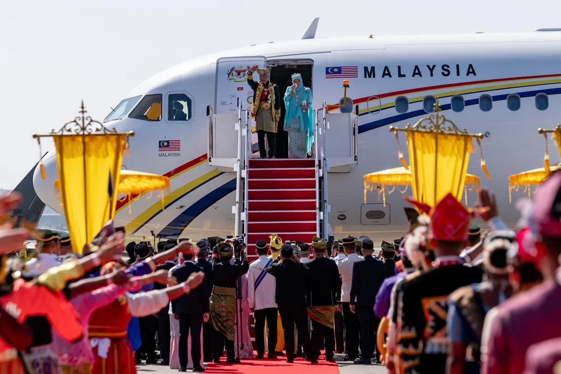 Usai istiadat di Parlimen, pasangan diraja itu diarak dengan perarakan megah berwarna-warni ke Lapangan Terbang Kuala Lumpur (KLIA).