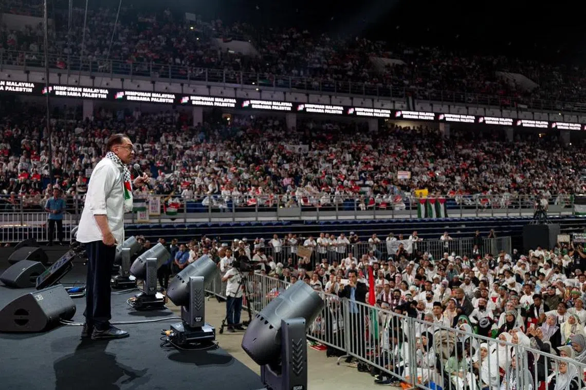 Perdana Menteri, Datuk Seri Anwar Ibrahim, ketika berucap di hadapan hadirin yang penuh semangat turut menyatakan sokongan tidak berbelah bahagi terhadap perjuangan Palestin dan mengecam layanan Israel terhadap rakyat Palestin.