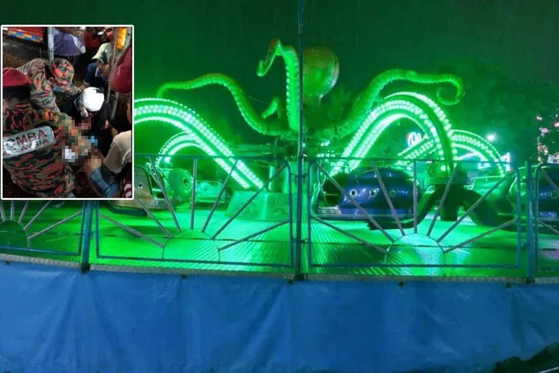 Mangsa lelaki dan wanita dewasa itu terjatuh dari permainan yang dipanggil ‘sotong ride’ itu semasa ia sedang bergerak.