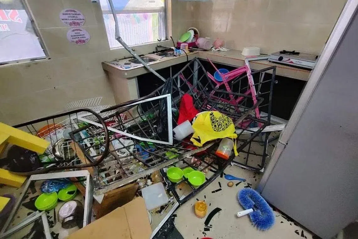 Kejadian pertama pada April lalu merosakkan pintu pagar belakang sekolah dan dinding bilik darjah.