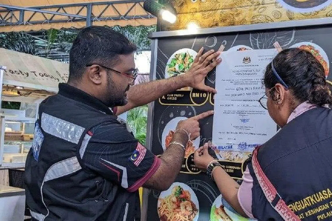 Pegawai Operasi Unit Keselamatan dan Kualiti Makanan Pejabat Kesihatan Daerah Timur Laut, Encik Muhammad Firdaus Abdul Halim, berkata dua daripada 28 premis yang diperiksa diarah tutup selama 14 hari mengikut Seksyen 11, Akta Makanan 1983.