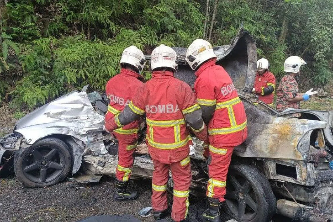 “Berikutan kemalangan itu, pemandu dan penumpang kereta tersepit di dalam kereta dan didapati rentung dan disahkan meninggal dunia di tempat kejadian,” katanya.
