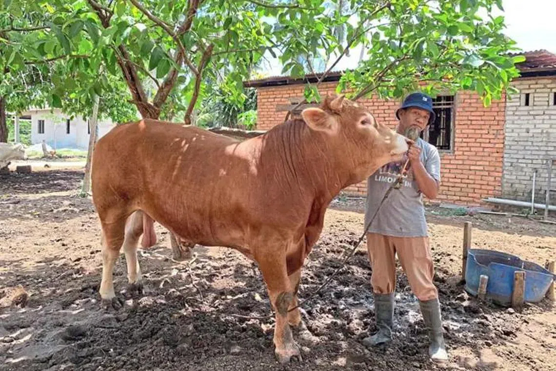 Menurut Paksu Mie, 53 tahun, dua daripada sembilan lembu gergasi di ladangnya, setiap satu seberat lebih 700 kilogram dan berharga hampir RM11,000 ($3,154), sudah dijual kepada pembeli di Kota Bharu, Kelantan, untuk dikorbankan pada Aidiladha.