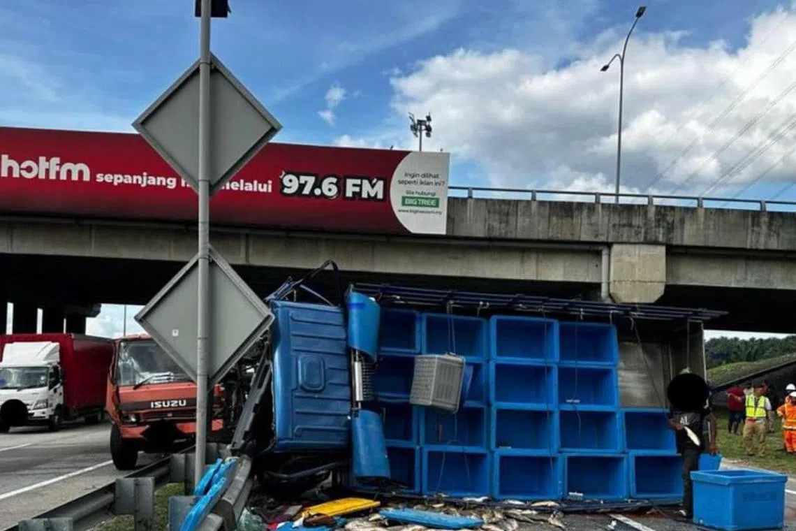 HULU SELANGOR: Seorang mekanik yang sedang membaiki lori rosak maut dirempuh dalam nahas tiga kenderaan di Kilometer 434.8 Lebuhraya Utara Selatan (Plus) arah selatan, berhampiran susur masuk tol Sungai Buaya, Hulu Selangor, Selangor.