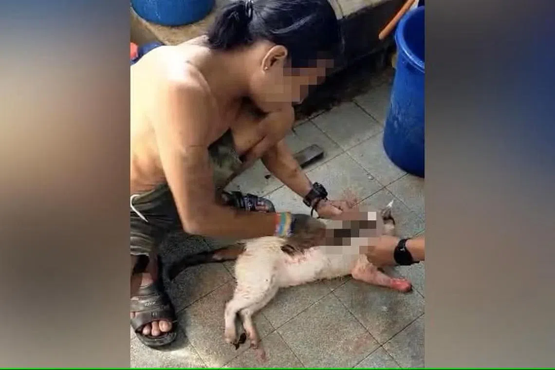 Dalam video itu, seorang lelaki boleh dilihat menggunakan pisau untuk menyiat kulit kucing itu ketika bercakap kepada kamera dalam bahasa Melayu dengan pelat warga asing.