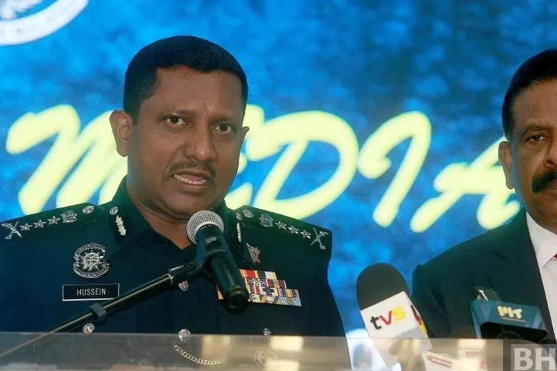 Datuk Seri Thaiveegan yang juga bekas Ketua Polis Pulau Pinang menghadiri sidang media berkenaan yang dipengerusikan Ketua Polis Selangor, Datuk Hussein Omar Khan.