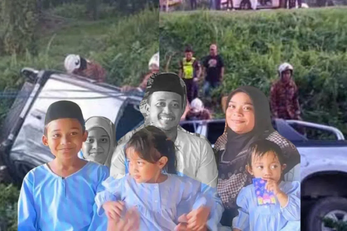 Difahamkan, kenderaan pacuan empat roda yang membawa keluarga enam beranak itu dalam perjalanan dari Felda Redong menuju ke bandar Segamat untuk membeli mainan.